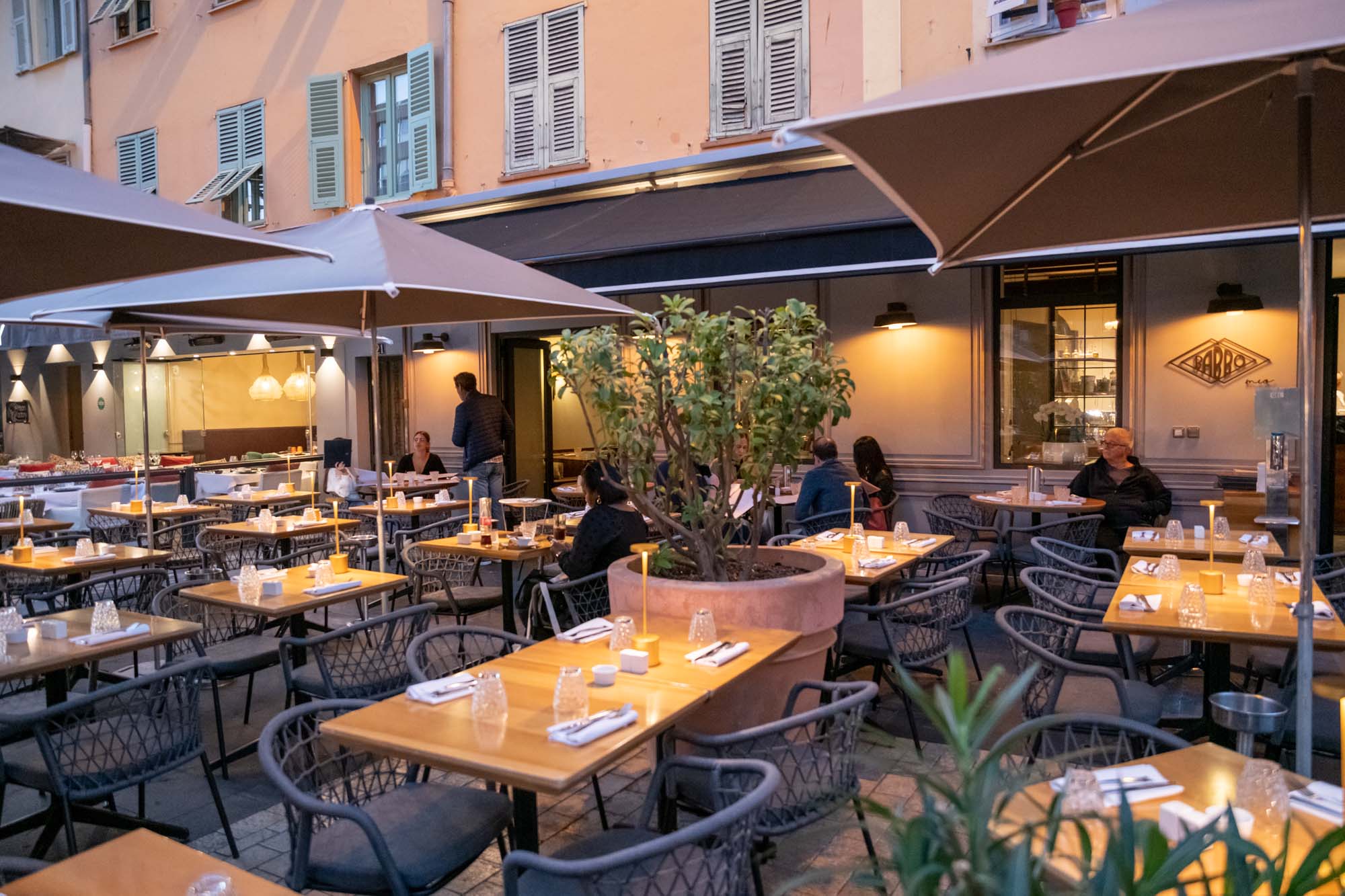 La grande terrasse du Babbo Mio vous permet de profiter pleinement des longues soirées d’été et de l’animation permanente du quartier. Une soixantaine de couverts en salle et presque autant en terrasse.